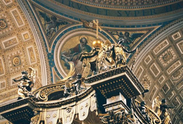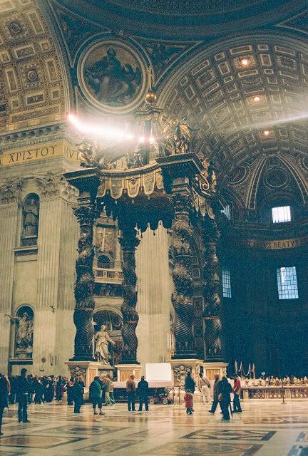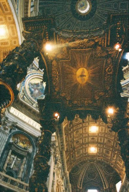 Brimming with contentment after my nice meal, I promptly became totally lost. I ended up at some castle, but was not in the mood to tour it. After some angst regarding my lost state (I had not yet procured a large map of Rome and was relying only on the partial maps in my Rick Steves book), I located a TI with a great map of the city. Before I could even study the map (I ended up chatting a bit outside the TI with a woman from Milan who tried first speaking to me in Italian (no cigar), then jumped into French when she learned I spoke that a little . . . her sister is here visiting from Lyon, France, so we chatted a bit as well), I looked up and realized that the sizeable dome in front of me could only be St. Peter's Basilica. So, I decided to pop in as long as I was so close. I really wanted to visit the Sistine Chapel, but it was already closed for the day, so I'll save that for next weekend.