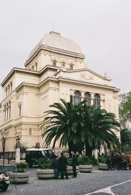 Met up with my tour guide, who it turns out is 20-something, rather than the old woman I had pictured. Much to our amusement, she had the same mental image of me, so it took a while for us to figure out who each other were and begin our tour! It was really fascinating . . . she knew EVERYONE walking around in this sort of Jewish community center, and there were a lot of people there, as they are electing a new rabbi today. Apparently, a long-ago pope thought it better for the Jews to live in a tiny walled in area, coincidentally surrounded by Christian churches (lots and lots of churches . . . I think I counted 8, which was not all of them, and it is not a very large area). This lasted about 300 years, until the liberation of the area, which now remains a center for Jewish life in Rome.