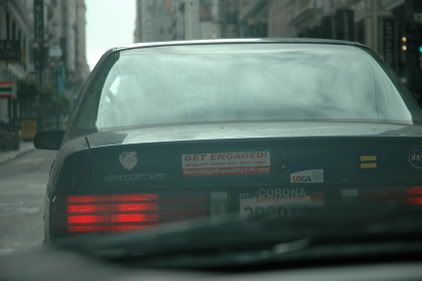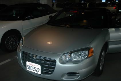 Ah, what a splendid trip! Uneventful flight to San Fran, which sped by remarkably quickly. Found my rental car (a silver Sebring convertible, with which to enjoy open skies and much cooler weather) after negotiating the interminably long walk/airport train/walk that is SFO. I was so pleased with the car that I photographed it to document the beginning of our journey together: