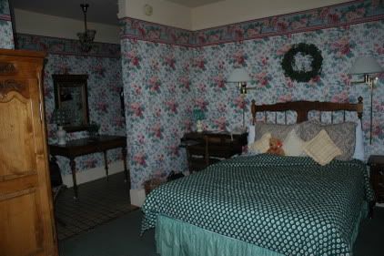 On arriving at the hotel, Petite Auberge, I waited for a while for a valet to take my car. When none appeared, I headed inside and found a very nice desk clerk. She was preoccupied, however, with the fact that their 70+ year old handyman, Louis, appeared to have gone missing. I felt like Nancy Drew stumbling into a new book's premise--"The Mystery of the Missing French Hotel Handyman." Sadly, I was not able to help her solve this mystery, as she already had someone else on the case. So she set me up with this cute room, where I placed my bags and relaxed for a bit: