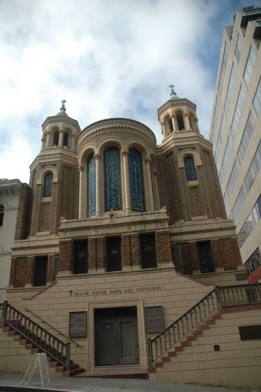 After relaxing by my I-couldn't-enjoy-this-in-Texas fireplace, I reluctantly tore myself away for a visit at the San Francisco Museum of Modern Art. On the way, I saw that the gate to Chinatown was just a few blocks from my hotel, as was this very imposing church: